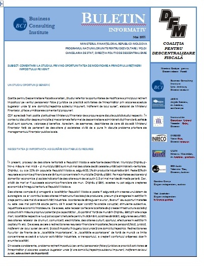 Coaliţia pentru Descentralizare Fiscală a analizat „Studiul referitor la oportunitatea de modificare a principiului reţinerii impozitului pe venitul persoanelor fizice şi juridice ce practică activitatea de întreprinzător prin alocarea acestuia bugetelor unde îşi are domiciliul/reşedinţa subiectul impunerii, indiferent de locul sursei” - elaborat de Ministerul Finanţelor - şi prezintă comentarii şi propuneri la acesta.