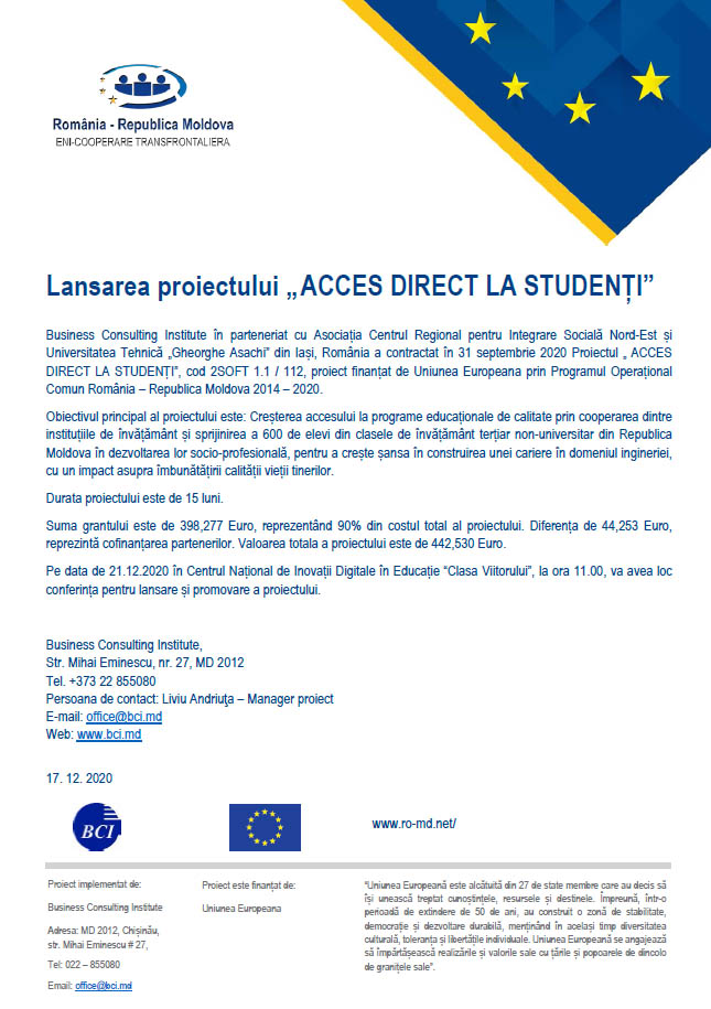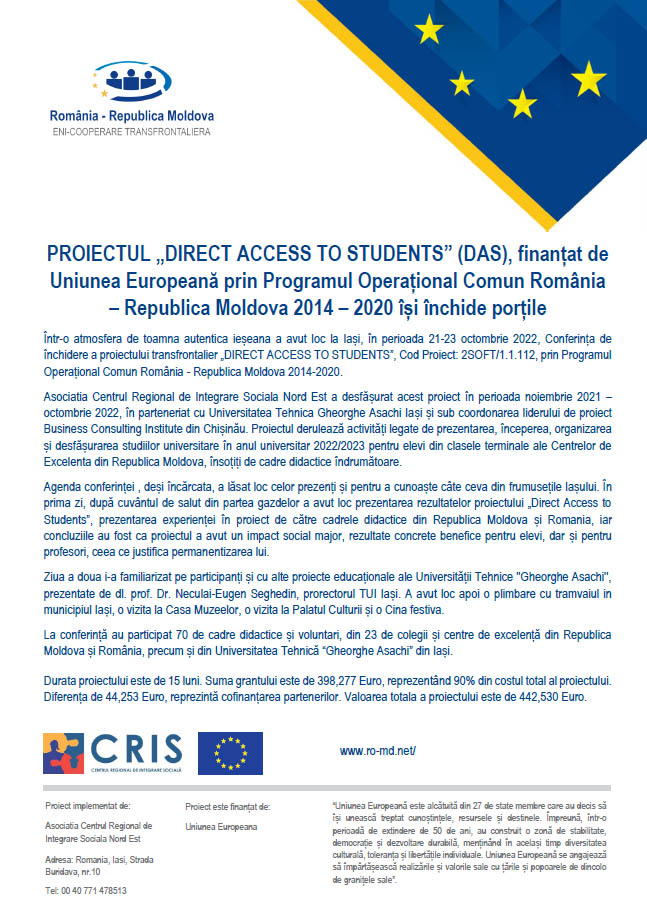 Comunicat de presă - CONFERINȚA FINALĂ A PROIECTULUI „ ACCES DIRECT LA STUDENȚI”